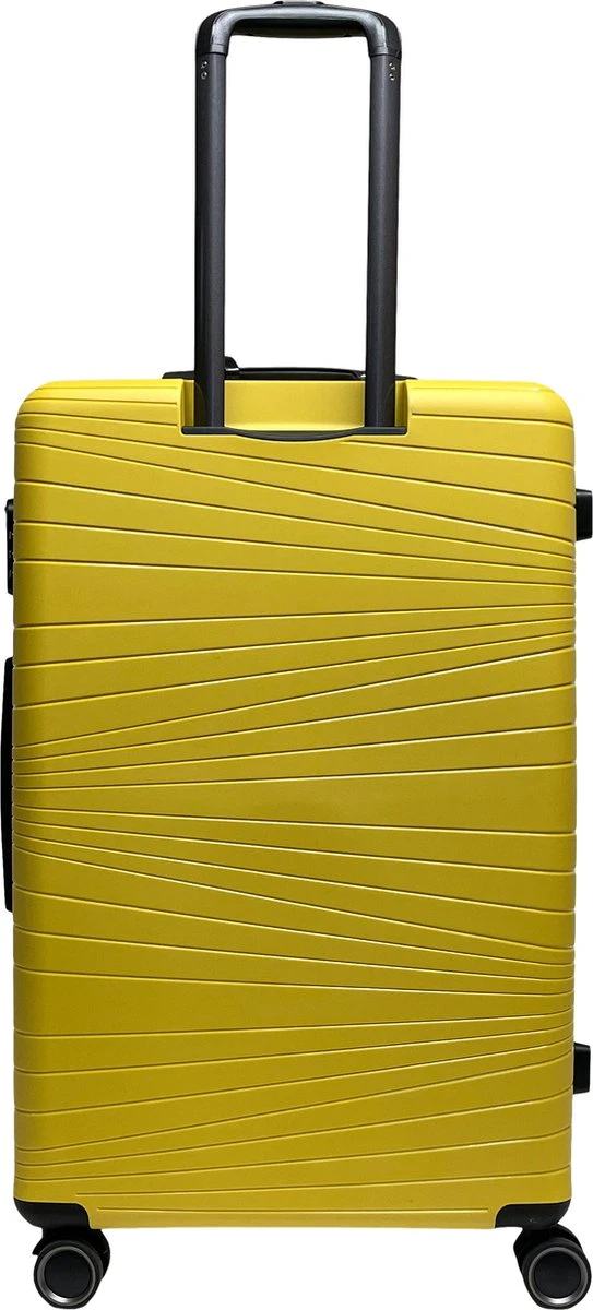 Grote hardschalen koffer van het merk Benzi, gemaakt van lichtgewicht polypropyleen. De koffer is voorzien van een ritssluiting rondom die op slot te zetten is middels een vast cijferslot op de zijkant van de koffer. Binnenin gevoerd, spanbanden en tussenschot met ritssluiting. Op het tussenschot zit een ritsvak en twee steekvakken voor het overzichtelijk opbergen van kleine reisaccessoires. Handvat op bovenkant en zijkant, uitschuifbare trekstang en comfortabel 4-wiel systeem. Voorzien van adreslabel.