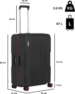 Een zorgvuldig samengestelde mix van hoogwaardige materialen. De naam zegt het al; De “Protector” kan tegen een serieus stootje door ultralicht polypropyleen materiaal. Voor een koffer met vaste kliksloten een echte lichtgewicht. Niet onbelangrijk voor je lange (wereld)-reis of stedentrip. Ritsen vormen een zwak beveiligingspunt op een koffer, dus als veiligheid een topprioriteit is voor u, dan ligt de keuze voor deze koffer voor de hand. Het geïntegreerde TSA-cijfercombinatieslot met twee vergrendelbare kliksloten reduceren de kans op inbraak tot een minimum.