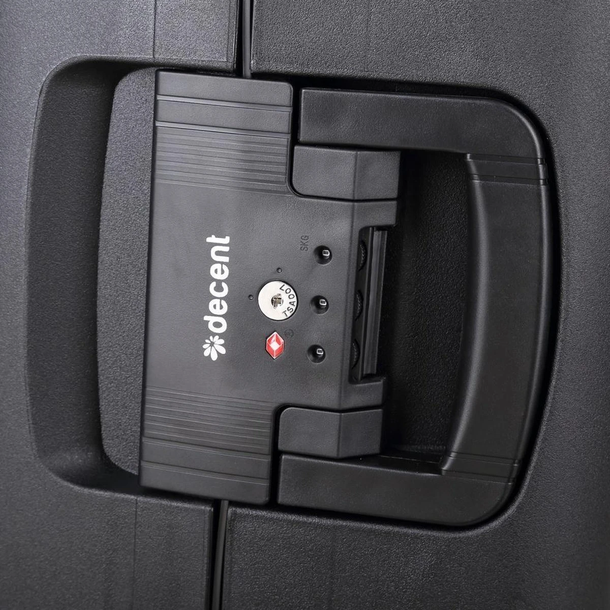 Hardschalen polypropyleen handbagage koffer uit de Transit serie van het merk Decent. De koffer is rondom voorzien van drie kliksloten. Op de boven-en onderkant zitten sloten die u vastklikt en op de zijkant zit het hoofdslot dat een TSA cijferslot is. De koffer heeft een zwarte voering, een tussenschot met rits, een extra ritsvak en is voorzien van spanbanden. Handvat op bovenkant en zijkant en voorzien van een comfortabel dubbel 4-wiel systeem.
