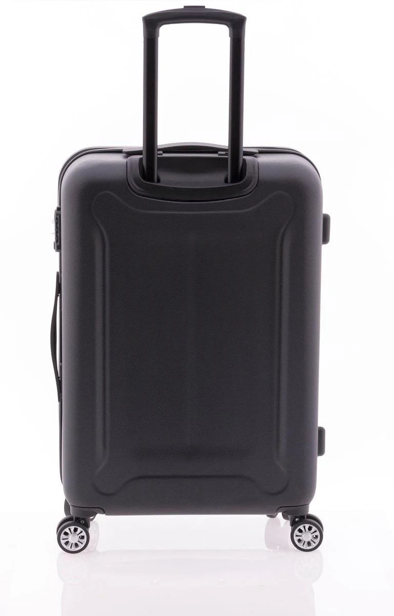Middelgrote hardschalen, ABS koffer uit de Beetle serie van Gladiator in kleur zwart. Koffer is voorzien van een ritssluiting rondom die op slot te zetten is middels een vast TSA cijferslot op de zijkant van de koffer. Binnenin gevoerd en voorzien van een tussenschot met ritssluiting en spanbanden. Handvat op boven- en zijkant en voorzien van comfortabel 4-wiel systeem.