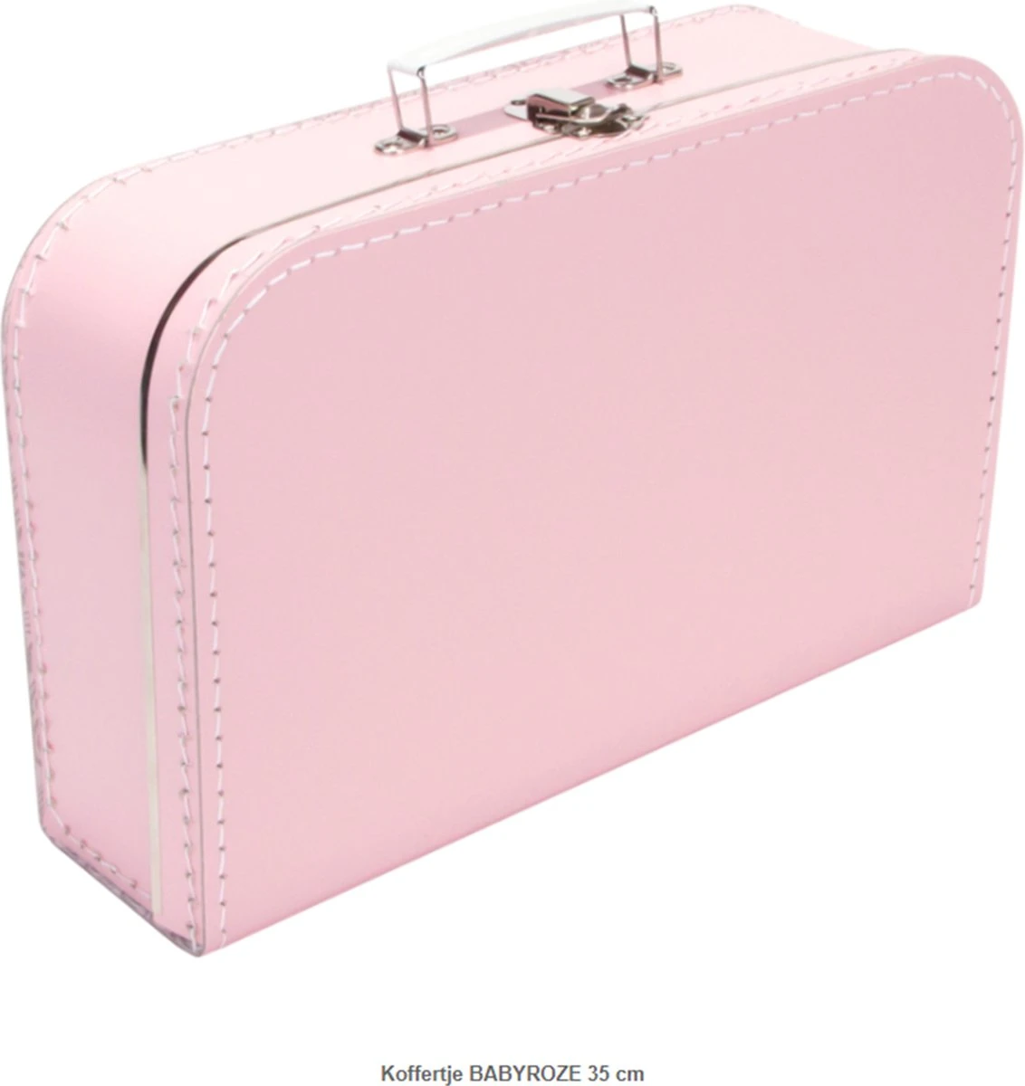De koffer van 35 cm is A4 formaat en daar past makkelijk een setje kleren, tandenborstel en de favoriete knuffel van jouw kindje in.