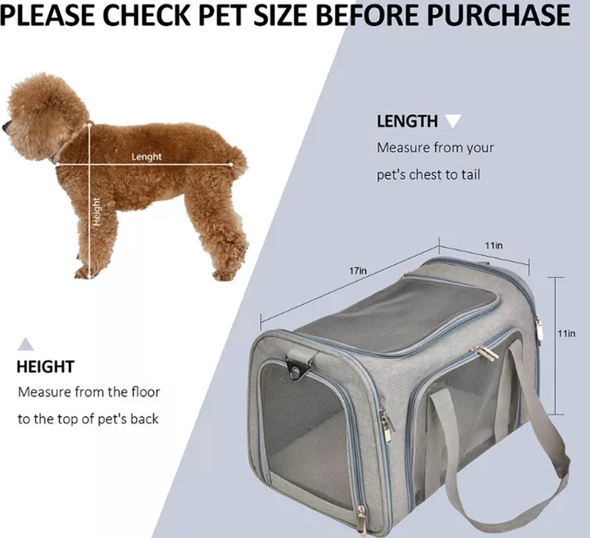 Formaat (Small) – 43 x 25 x 28 cm, geschikt voor huisdieren tot 8 kg.