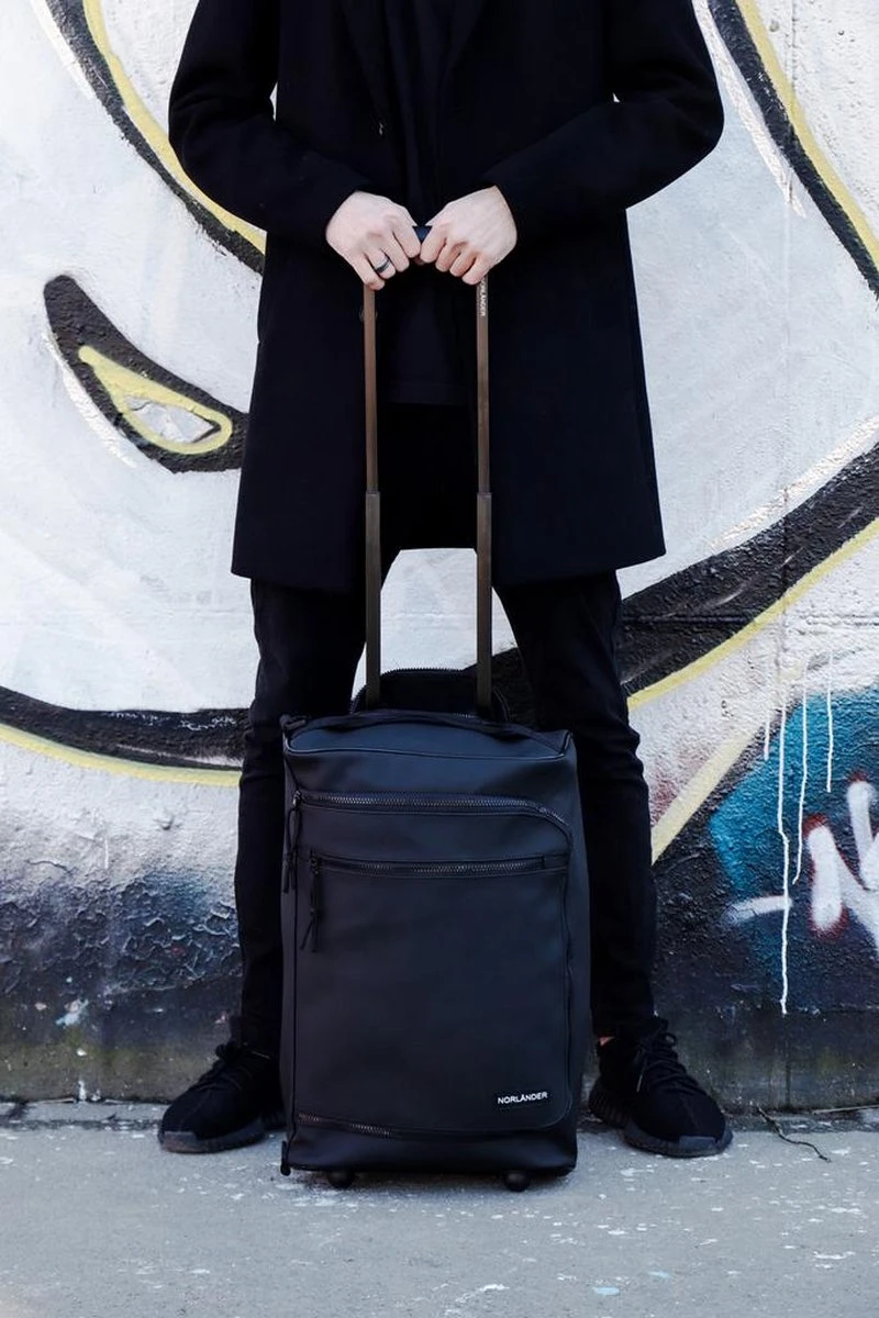 Ben je op zoek naar een goede handbagage trolley? De Norländer Lyon trolley Dull PU is een praktische en ruime trolleytas is gemaakt van dull PU materiaal en heeft daarmee een chique uitstraling. Er zijn 2 haken voor de meegeleverde draagriem, voor vele mogelijkheden.