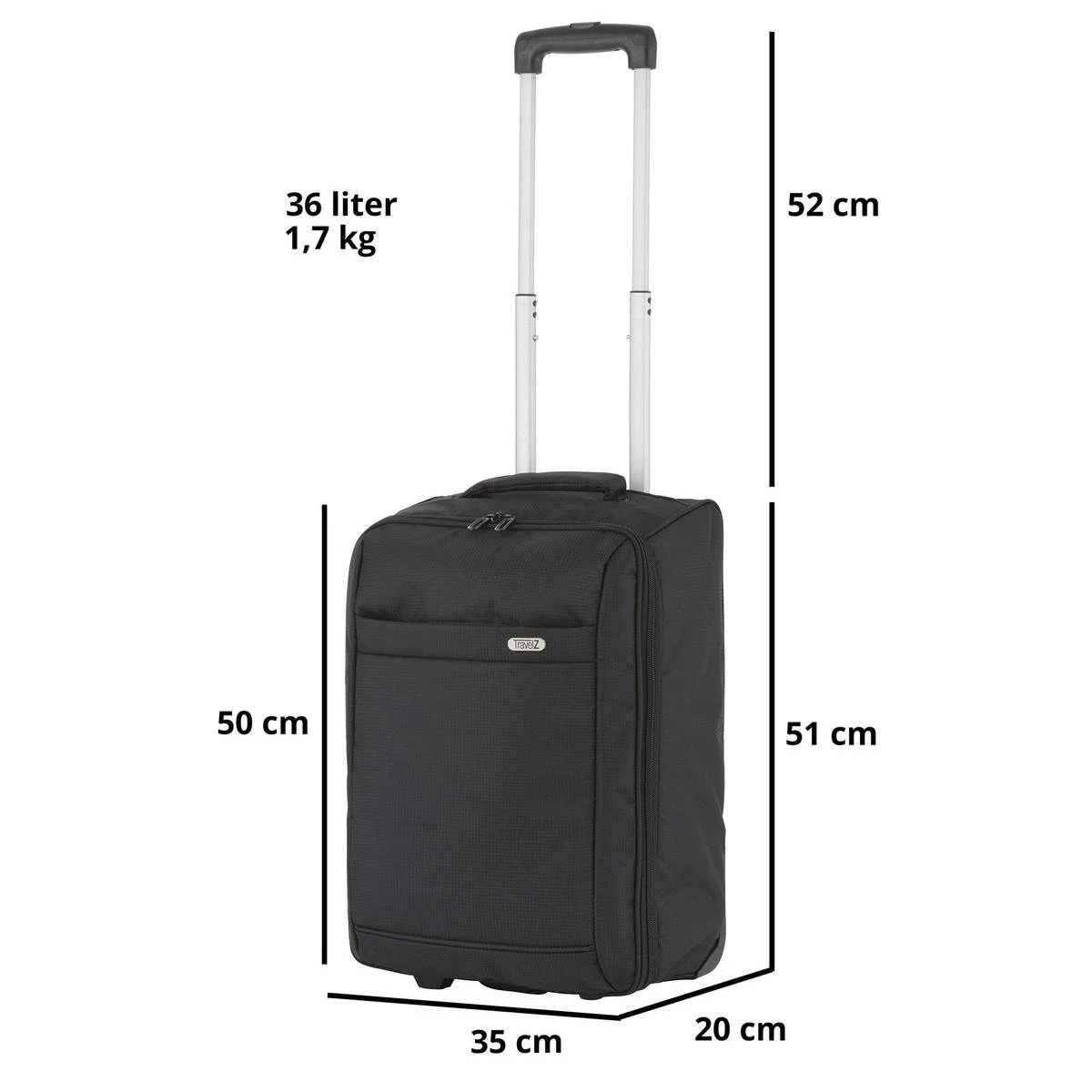 De TravelZ handbagage trolley is een heerlijke lichte reispartner voor jong en oud. De TravelZ trolley is heerlijk Licht, is erg makkelijk op te vouwen tot een kleiner pakketje door middel van de verstevigende bodem los te klitten en met 51 x 35 x 20cm voldoet het aan alle IATA normen, heeft 2 geïntegreerde wielen, vervaardigd uit ribstop polyester, bevat een verstelbaar handvat en 2 jaar garantie.